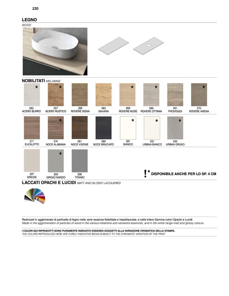 I COLORI QUI RIPRODOTTI SONO PURAMENTE INDICATIVI ESSENDO SOGGETTI ALLA VARIAZIONE CROMATICA DELLA STAMPA.