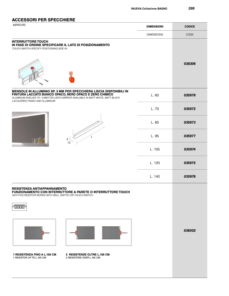 MENSOLE IN ALLUMINIO SP. 3 MM PER SPECCHIERA LISCIA DISPONIBILI IN
