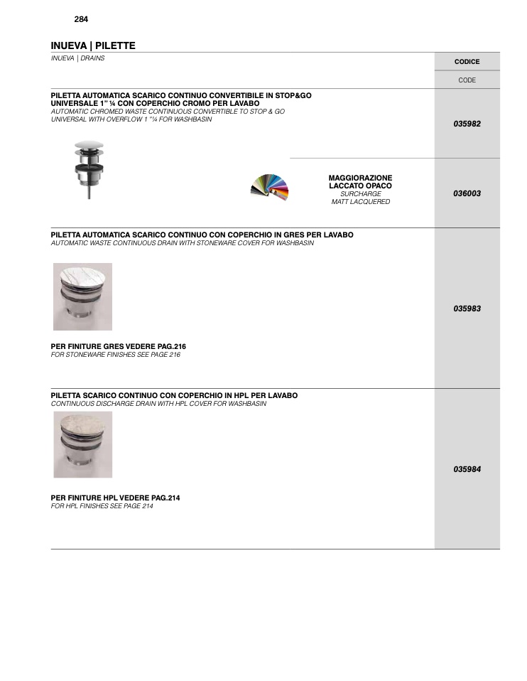 PILETTA AUTOMATICA SCARICO CONTINUO CON COPERCHIO IN GRES PER LAVABO