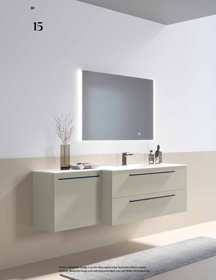 Finiture: Nobilitato Greige e laccato Nero opaco e top Technoteck Bianco opaco.