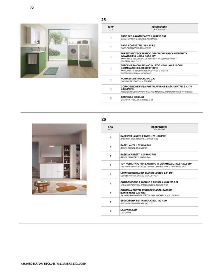 N.B. MISCELATORI ESCLUSI / N.B. MIXERS EXCLUDED