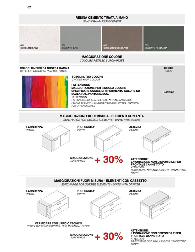 SURCHARGE FOR OUTSIZE ELEMENTS - UNITS WITH DRAWER