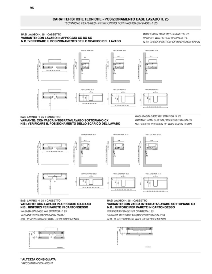 TECHNICAL FEATURES - POSITIONING FOR WASHBASIN BASE H. 25