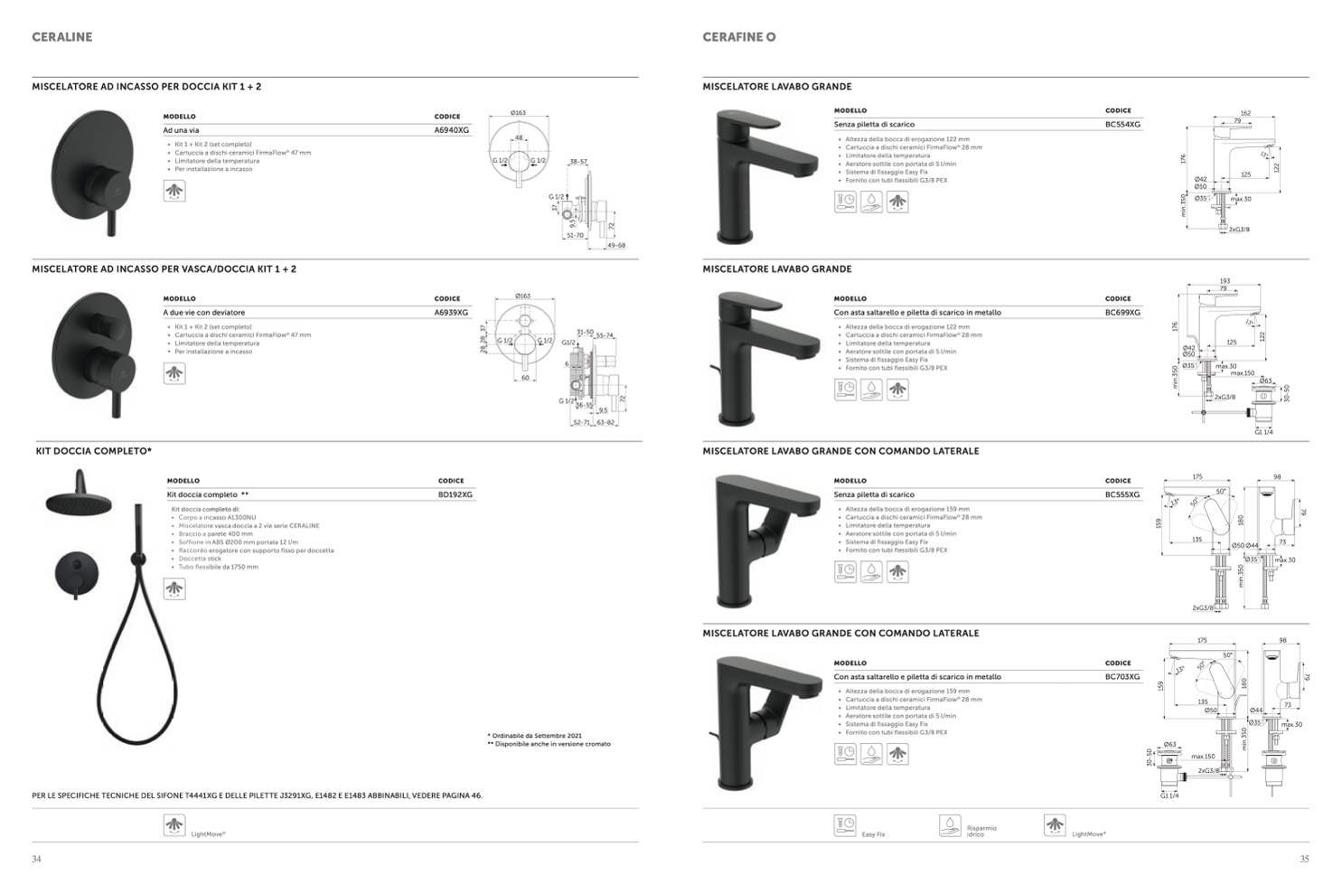 PER LE SPECIFICHE TECNICHE DEL SIFONE T4441XG E DELLE PILETTE J3291XG, E1482 E E1483 ABBINABILI, VEDERE PAGINA 46.