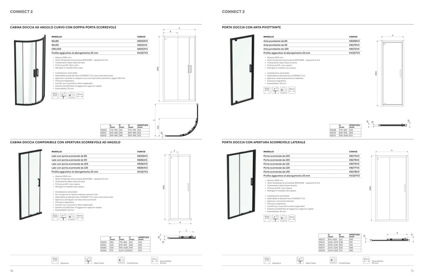 • Abbinabile al laterale fisso CONNECT 2/L solo come terzo lato