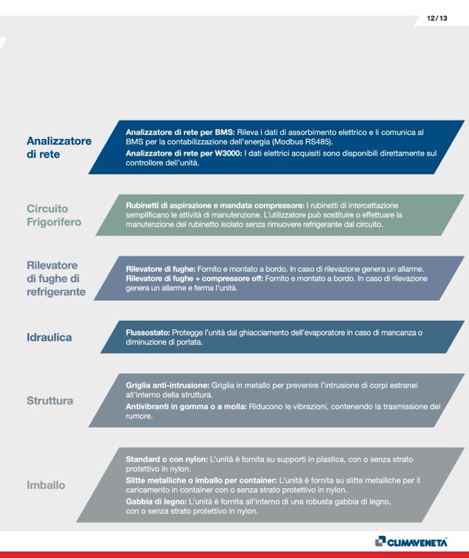 Rilevatore di fughe: Fornito e montato a bordo. In caso di rilevazione genera un allarme.