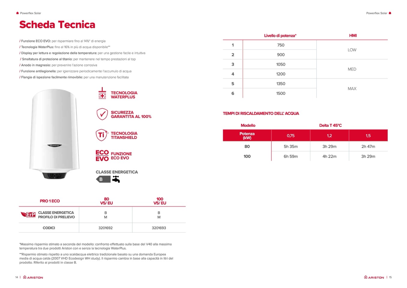temperatura tra due prodotti Ariston con e senza la tecnologia WaterPlus.