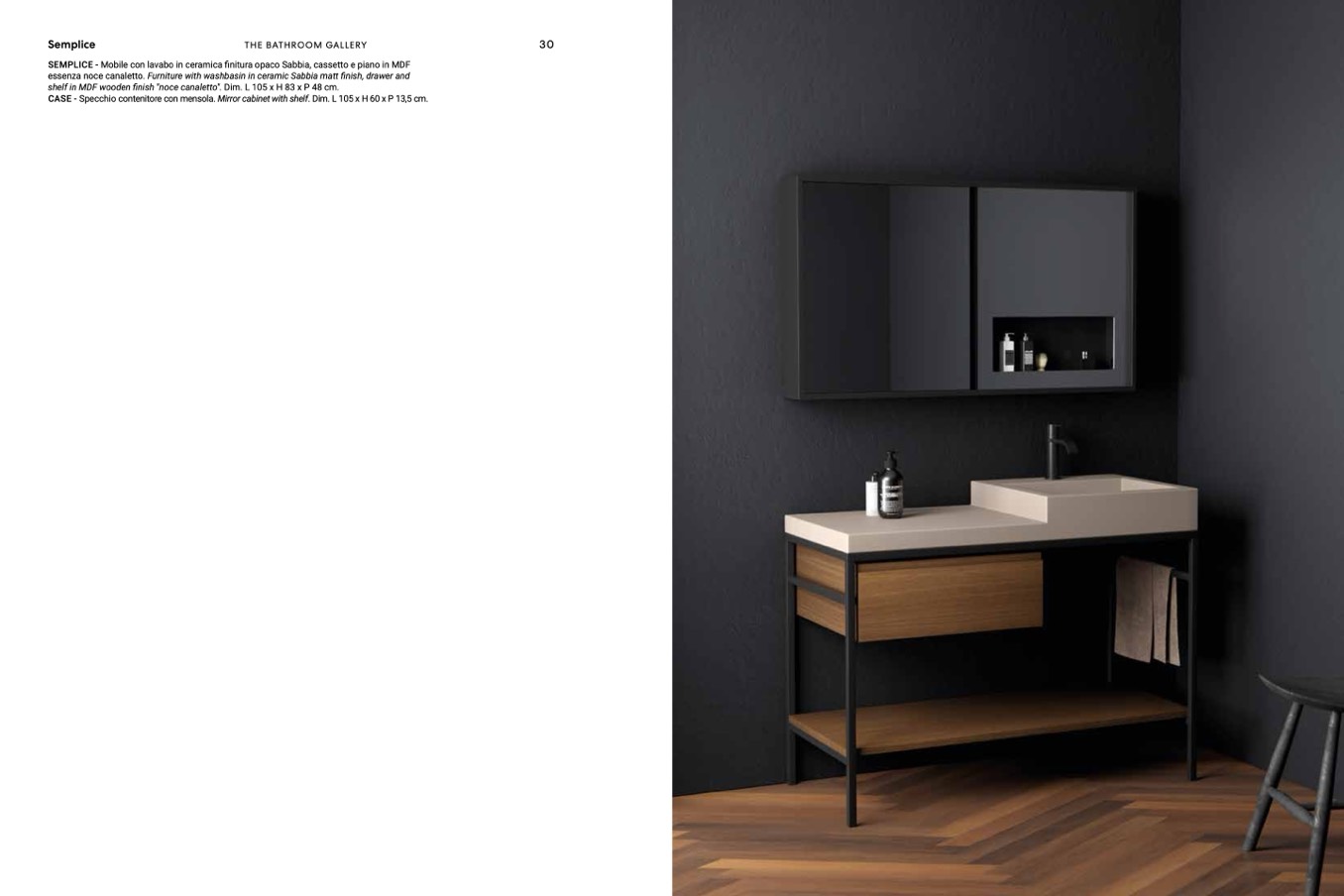 essenza noce canaletto. Furniture with washbasin in ceramic Sabbia matt finish, drawer and