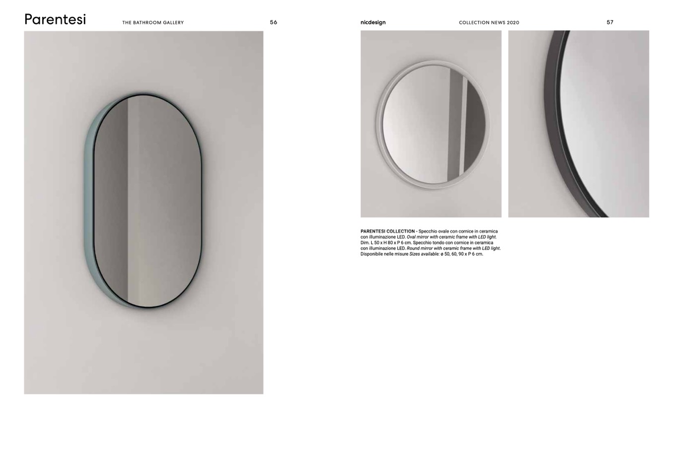 con illuminazione LED. Round mirror with ceramic frame with LED light.