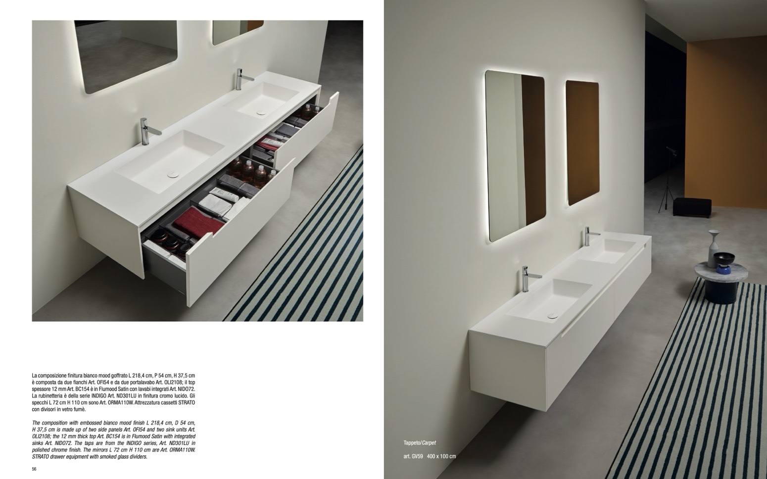 spessore 12 mm Art. BC154 è in Flumood Satin con lavabi integrati Art. NIDO72.