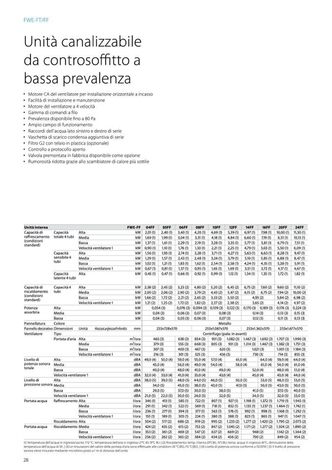(1) Temperatura dell'acqua in ingresso/uscita 7/12 °C; temperatura dell'aria in ingresso 27°C BS 19°C BU | (2) Riscaldamento: temp. interna 20°CBS, 15°CBU; temp. acqua in ingresso 45°C, diminuzione dell