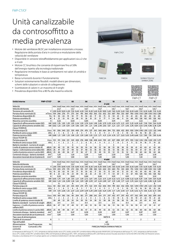 (1) Temperatura dell'acqua 7°C / 12°C, temperatura dell'aria bulbo secco 27°C, bulbo umido 19°C (umidità relativa 47%) secondo EN1397:2015 | (2) Temperatura dell'acqua 7°C / 12°C, temperatura dell'aria bulbo
