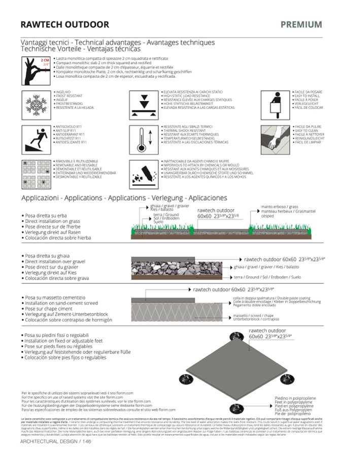 per materiale installato a regola d’arte. / Ceramic tiles undergo a compacting thermal treatment that ensures resistance and durability. The low level of water absorption makes the slabs frost resistant. This could result in superficial water stagnations even if