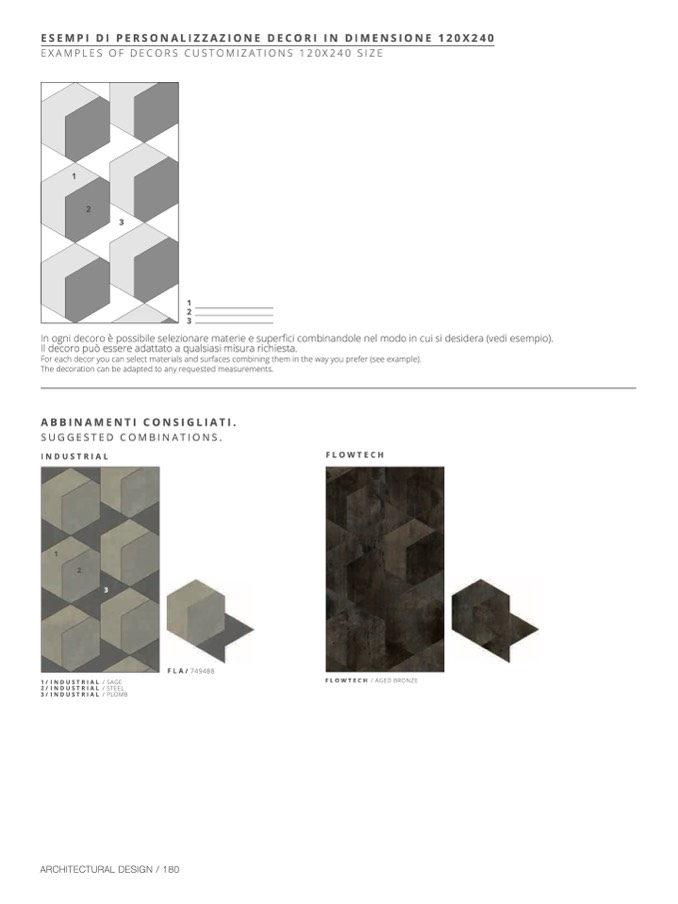 In ogni decoro è possibile selezionare materie e superfici combinandole nel modo in cui si desidera (vedi esempio)