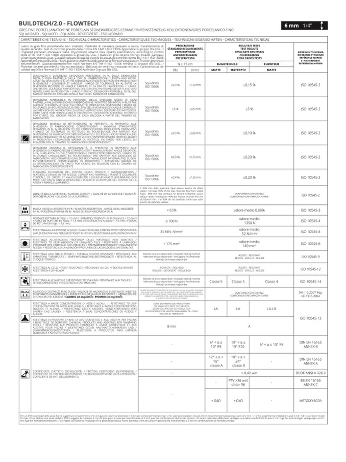 CARATTERISTICHE TECNICHE - TECHNICAL CHARACTERISTICS - CARACTERISTIQUES TECHNIQUES - TECHNISCHE EIGENSCHAFTEN - CARACTERÍSTICAS TÉCNICAS