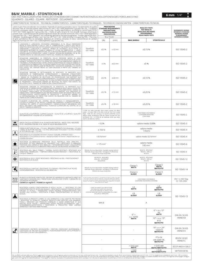 CARATTERISTICHE TECNICHE - TECHNICAL CHARACTERISTICS - CARACTERISTIQUES TECHNIQUES - TECHNISCHE EIGENSCHAFTEN - CARACTERÍSTICAS TÉCNICA