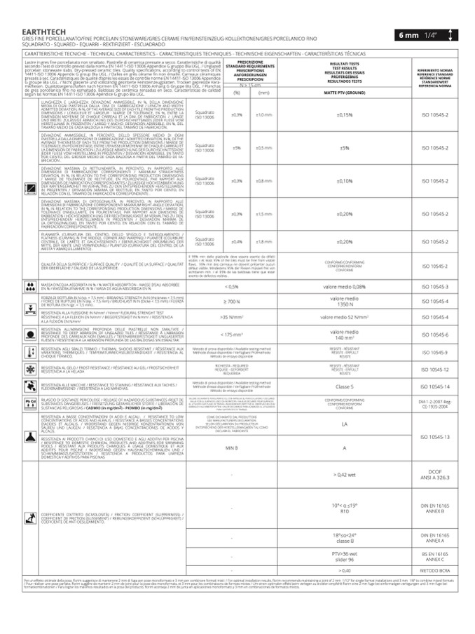 CARATTERISTICHE TECNICHE - TECHNICAL CHARACTERISTICS - CARACTERISTIQUES TECHNIQUES - TECHNISCHE EIGENSCHAFTEN - CARACTERÍSTICAS TÉCNICA