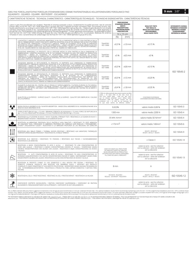 florim recommends maintaining a joint of 2 mm 1/12” for single format installations and 3 mm 1/8” to combine mixed