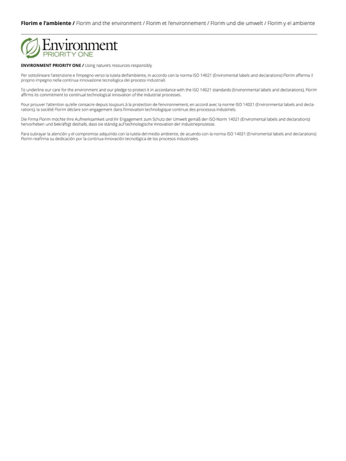 To underline our care for the environment and our pledge to protect it in accordance with the ISO 14021 standards (Environmental labels and declarations), Flori