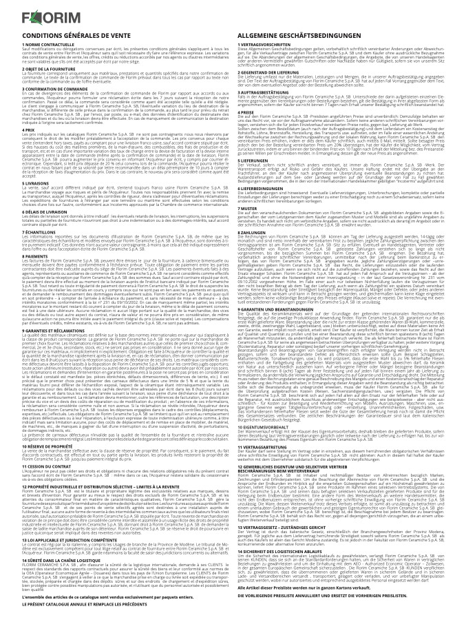 gen, für alle Verkaufverträge zwischen Florim Ceramiche S.p.A. SB und dem Käufer ohne ausdrückliche Bezugnahm