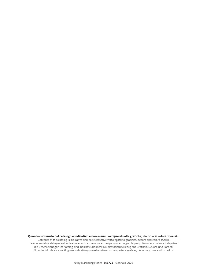 Quanto contenuto nel catalogo è indicativo e non esaustivo riguardo alle grafiche, decori e ai colori riportati.