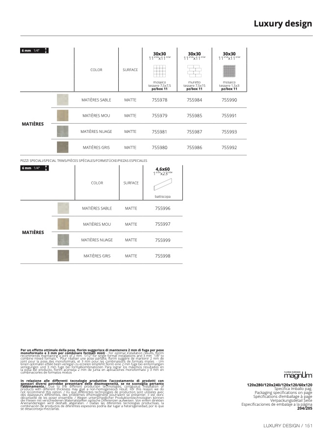 combine mixed formats. - Pour réaliser une pose parfaite, florim suggére de mantenir 2 mm d