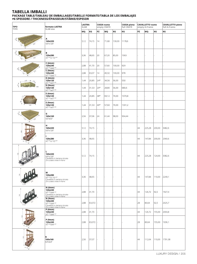 PACKAGE TABLE/TABLEAU DE EMBALLAGES/TABELLE FORMATE/TABLA DE LOS EMBALAJES