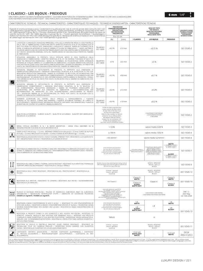CARATTERISTICHE TECNICHE - TECHNICAL CHARACTERISTICS - CARACTERISTIQUES TECHNIQUES - TECHNISCHE EIGENSCHAFTEN - CARACTERÍSTICAS TÉCNICA