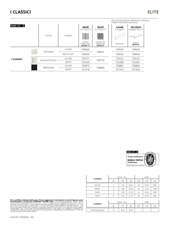 combine mixed formats. - Pour réaliser une pose parfaite, florim suggére de mantenir 2 mm d