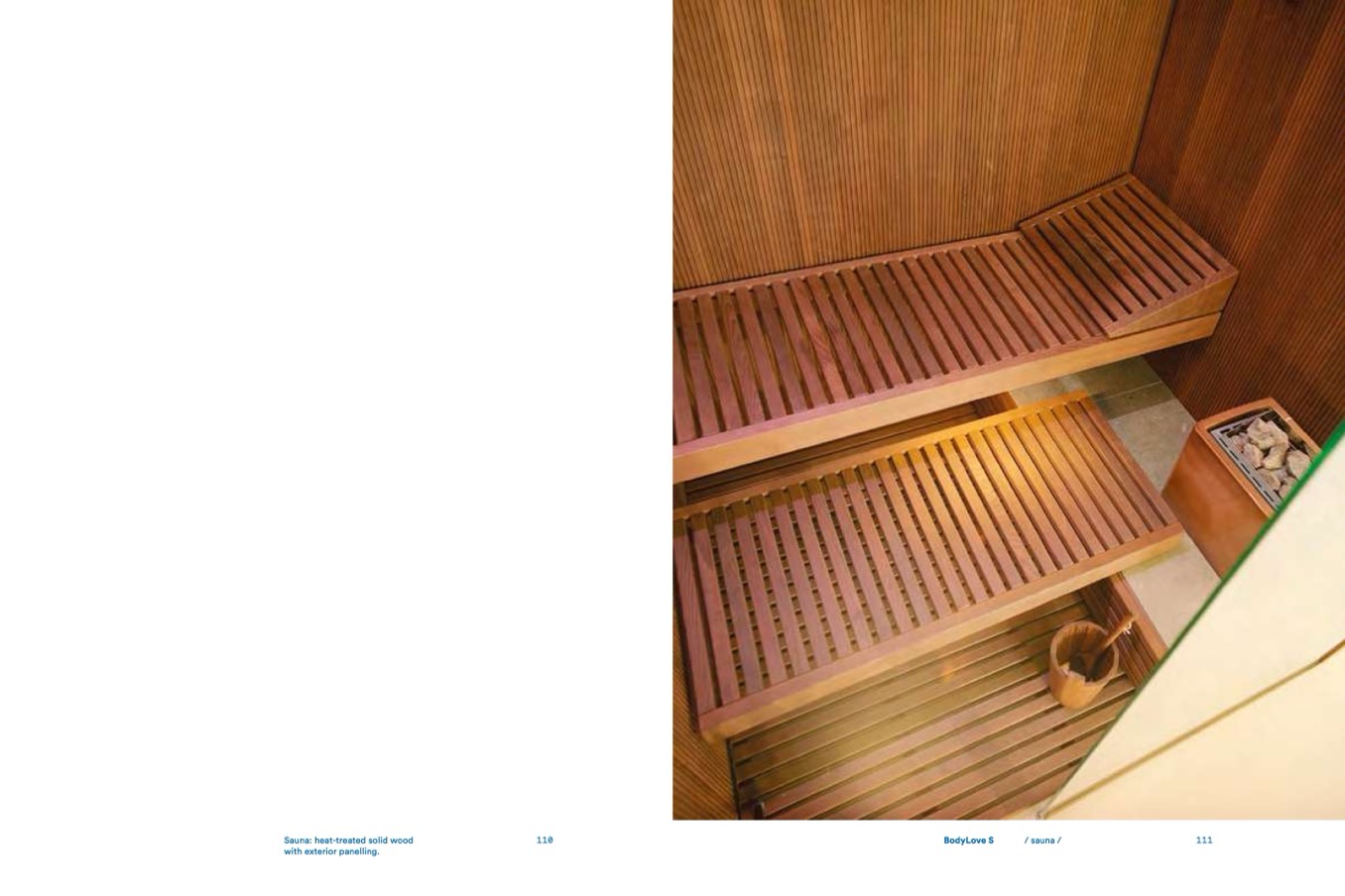Sauna: heat-treated solid wood