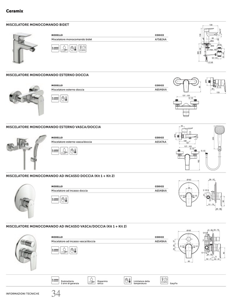 MISCELATORE MONOCOMANDO AD INCASSO DOCCIA (Kit 1 + Kit 2)