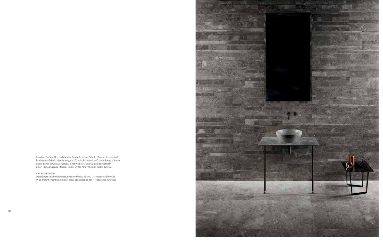 Basin: Ninfa in Gris du Marais / Rear wall: Gris du Marais Lithoverde®