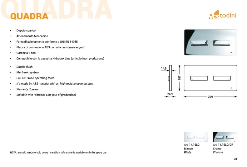 Compatibile con la cassetta Hidrobox Line (articolo fuori produzione)