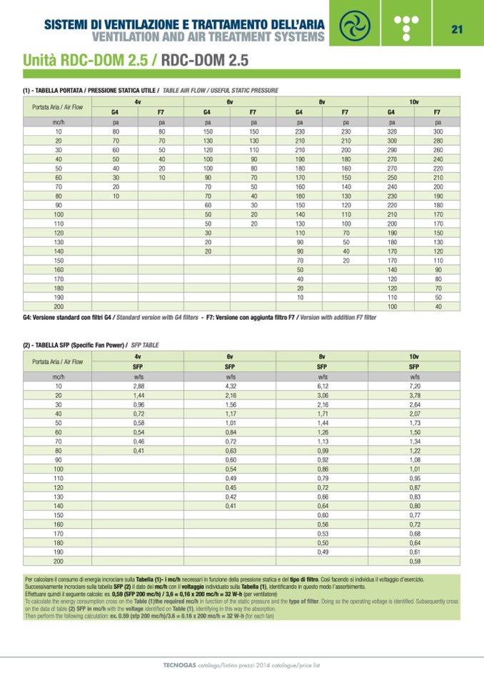 (2) - TABELLA SFP (Specific Fan Power) / SFP TABLE