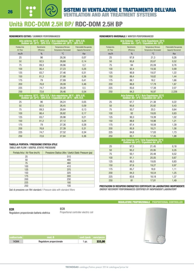 TECNOGAS catalogo/listino prezzi 2014 catalogue/price list