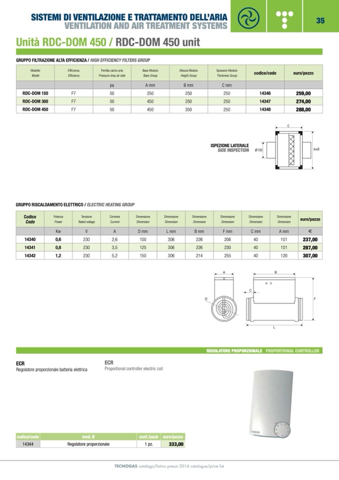 TECNOGAS catalogo/listino prezzi 2014 catalogue/price list