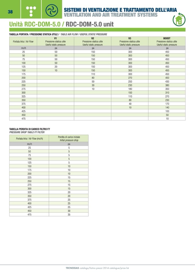 TABELLA PORTATA / PRESSIONE STATICA UTILE / TABLE AIR FLOW / USEFUL STATIC PRESSURE