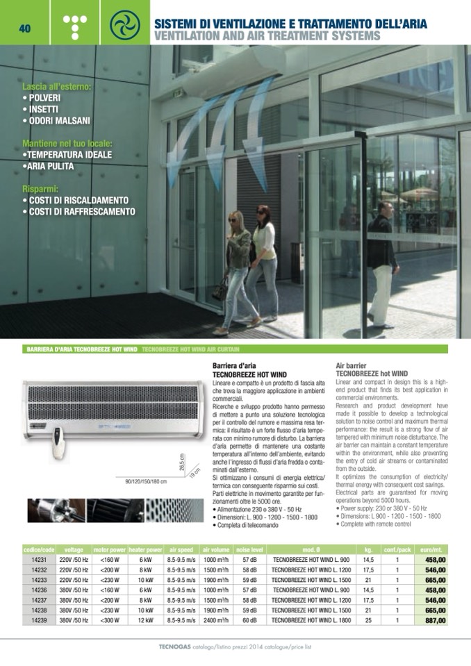 BARRIERA D’ARIA TECNOBREEZE HOT WIND TECNOBREEZE HOT WIND AIR CURTAIN