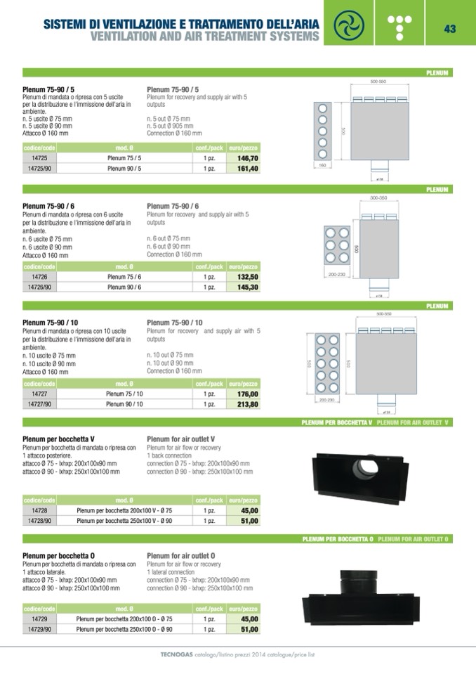 TECNOGAS catalogo/listino prezzi 2014 catalogue/price list