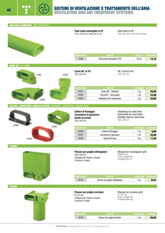 TECNOGAS catalogo/listino prezzi 2014 catalogue/price list