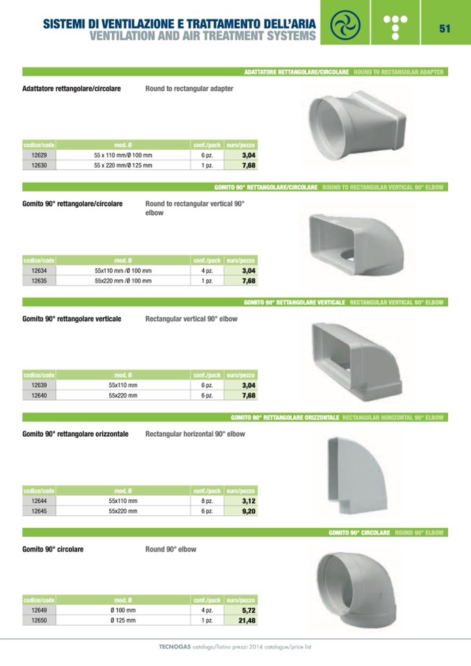 TECNOGAS catalogo/listino prezzi 2014 catalogue/price list