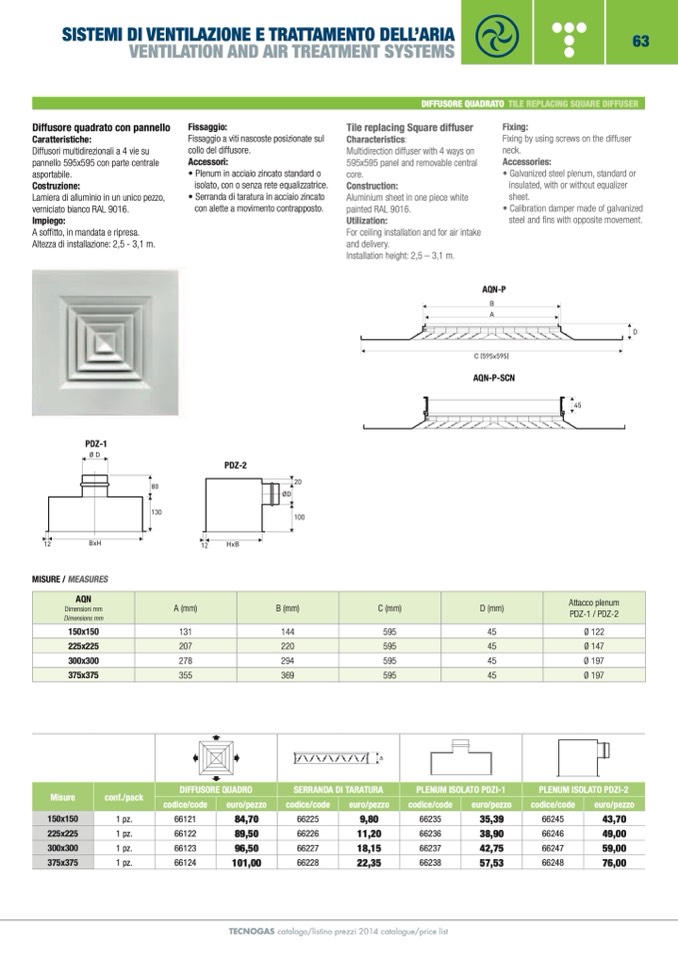 TECNOGAS catalogo/listino prezzi 2014 catalogue/price list