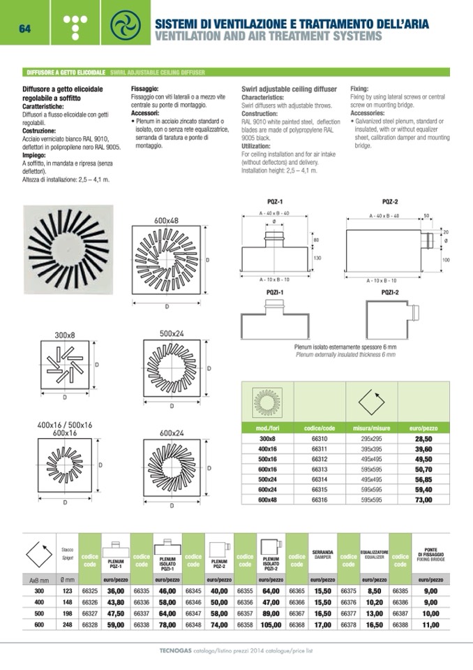 TECNOGAS catalogo/listino prezzi 2014 catalogue/price list