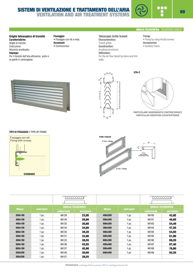 TECNOGAS catalogo/listino prezzi 2014 catalogue/price list