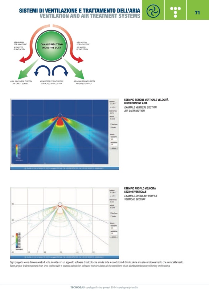 Ogni progetto viene dimensionato di volta in volta con un apposito software di calcolo che simula tutte le condizioni di distribuzione aria sia condizionamento che in riscaldamento.