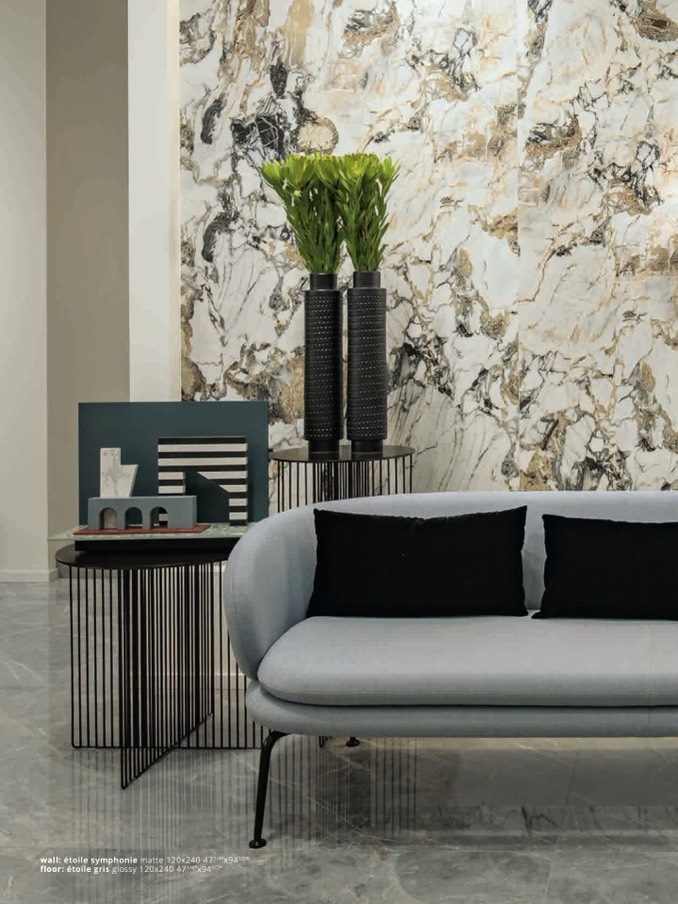 floor: étoile gris glossy 120x240 471/4”x941/2”