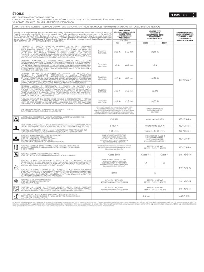 CARATTERISTICHE TECNICHE - TECHNICAL CHARACTERISTICS - CARACTERISTIQUES TECHNIQUES - TECHNISCHE EIGENSCHAFTEN - CARACTERÍSTICAS TÉCNICAS