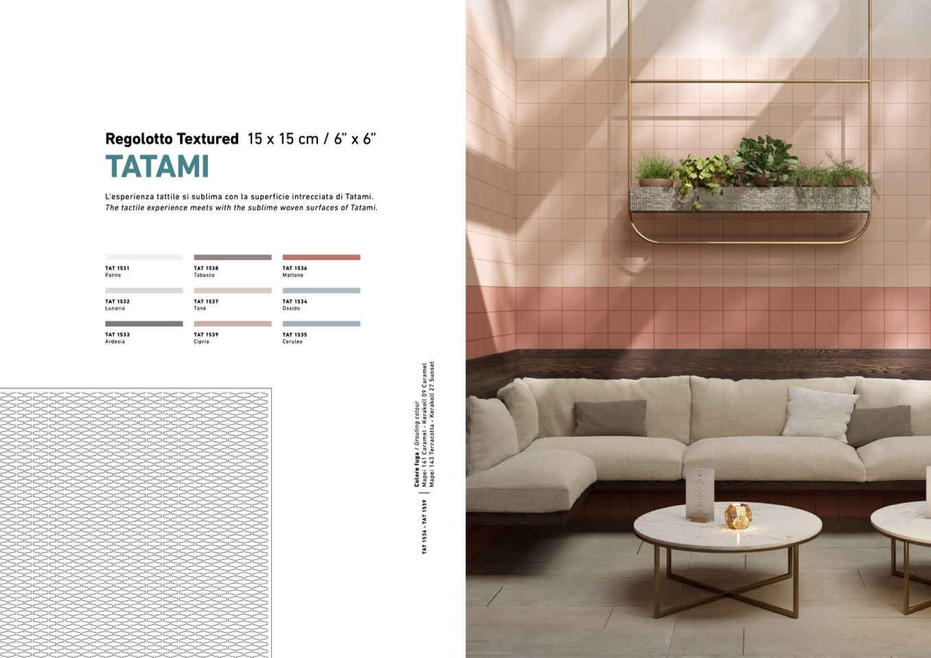 The tactile experience meets with the sublime woven surfaces of Tatami.
