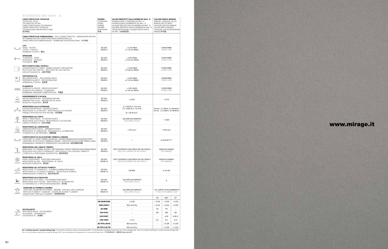 VALORI PRESCRITTI DALLE NORME EN 14411 - G