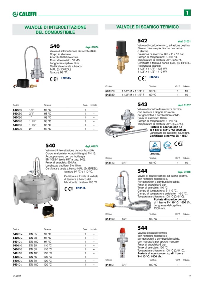 Temperatura di taratura: 100 °C (0/-5 °C).